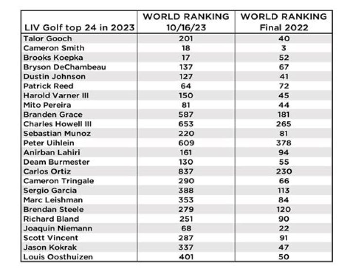 The LIV Golf Rankings are a comprehensive system that evaluates the performance of professional golfers competing in LIV Golf events. By considering factors such as tournament finishes, scoring averages, and head-to-head matchups, the rankings provide an accurate assessment of each player's current form and overall skill level.