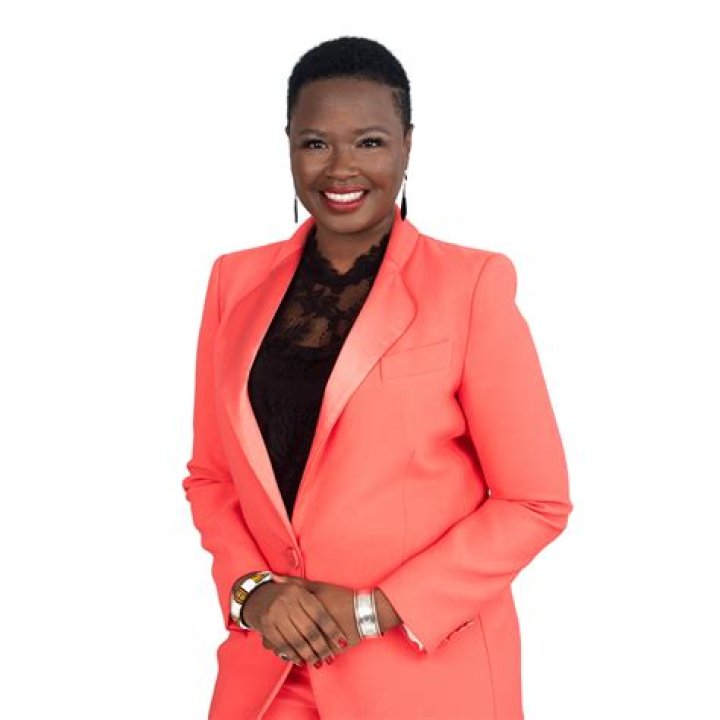 Issa Rae aka Issa Dee Red cold sholder jacket by Thebe Magugu Issa