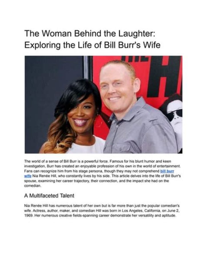 Nia Hill and Bill Burr have been married since 2013. They have two children together. Hill is a supportive wife who often accompanies Burr on his tours and appearances. She is also a frequent guest on his podcast, "The Bill Burr Podcast".